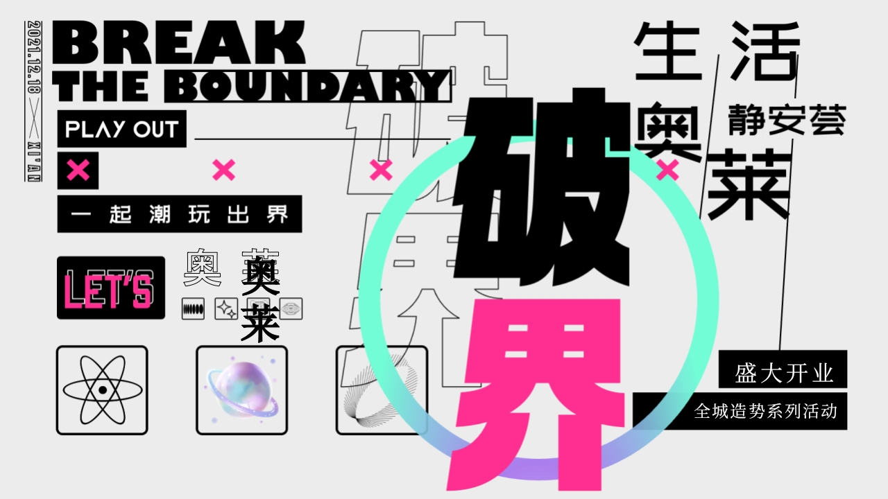 3021-12.18BREAKTHEBOUNDAR生活PLAy outXO'AKX静安荟起潮玩出界LET'S奥奥盛大开业全城造势系列活动REFUSETHE RULES拒绝墨守成规对古板SUPERIOR PRODLSUSA HAJOR LEAGUE挑战单调无趣CHALLENGE2120BORING对乏味BCARSay No对不可能潮玩版图米BREAKTREND MAPBOUNDARY我们要打破#边界#就要破界传播破界形象破界声势破界玩趣破解MAKEEVERYTHINGTRENDY以潮制潮与城市弄潮er开拓无边潮#界#范造趣城际