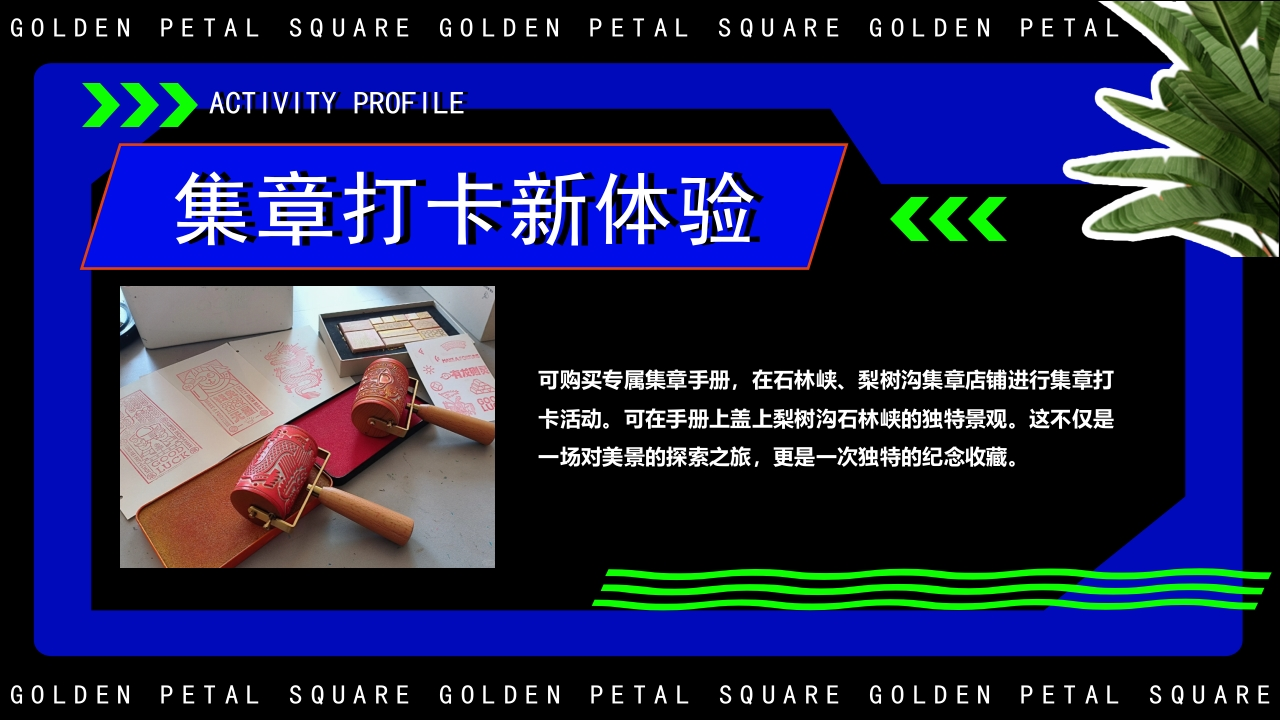 FUNNYT70石峡2024景区活动策战划嵋GOLDEN FLOWER PIAZZA DEL POPOLO FOOD CARNIVALGOLDEN PETAL SQUAR盖章式旅行(年轻人喜欢的旅游形式)有人7天收集728枚印章“盖章式”旅行成古城游新形式听说特种兵旅游己经进化到四处盖章了?古有唐僧师徒西天取经,手握通关文牒,每到一国都需要加盖该国印玺方可通行;今有我与我朋友特种兵旅游,手握“盖章护照”,每到一地先直奔能盖文旅章的小店,排队两小时盖完50个章再离开。中国价渗网cn价泳表主办生活频道首页〉资讯〉正文“盖章式旅游”成年轻人新宠2023年09月15日09:39来源:中国消费者报桑雪骐GOLDEN PETAL SQUARE GOLDEN PETAL SSQUARE GOLDEN PETAL SQUAREGOLDEN PETAL SQUARE GOLDEN PETAL SQUARE GOLDEN PETAL》》∑ACTIVITY PROFILE集章打卡新体验可购买专属集章手册,在石林峡、梨树沟集章店铺进行集章打卡活动。可在手册上盖上梨树沟石林峡的独特景观。这不仅是8R一场对美景的探索之旅,更是一次独特的纪念收藏。GOLDEN PETAL SQUAREGOLDEN PETAL SQUARE GOLDEN PETAL SQUAREGOLDEN PETAL SQUAR石林峡活动排期国风盛宴峡谷剧本杀5月1日-5月5日10月1日-10月7日暑期活动回归自然GOLDEN PETAL SQUARE GOLDEN PETAL SQUARE GOLDEN PETAL SQUAREGOLDEN PETAL SQUARE GOLDEN PETAL SQUARE GOLDEN PETAL》》节庆活动ACTIVITY PROFILEGOLDEN PETAL SQUARE GOLDEN PETAL SQUARE GOLDEN PETAL SQUAREGOLDEN PETAL SQUARE GOLDEN PETAL SQUARE GOLDEN PETAL》》》5月1日-5月5日ACTIVITY PROFILEGOLDEN PETAL SQUARE GOLDEN PETAL SQUARE GOLDEN PETAL SQUARE