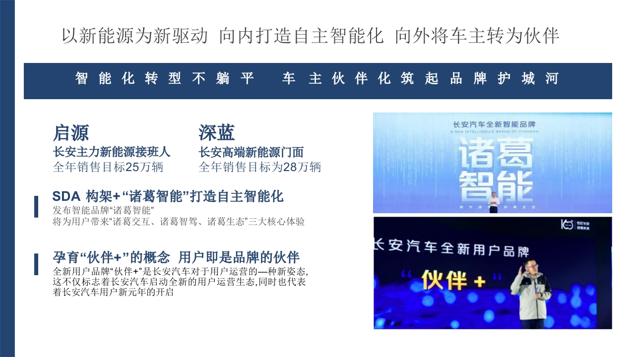 2025年长安汽车新媒体运营方案UNI-V⑨烹将目录Table of Contents背景分析平台自媒体运营策略营销创意0102PART01长安启源AO6背景分析及策略推导去年名列自主销量前茅,依靠自主品牌销量中流砥柱位置209.78万辆47.40万辆46.97万辆23.52万辆自主品牌新能源汽车销量自主品牌新能源汽车销量CS系列2023销量UN系列2023销量■管业收入(亿元)。自主品牌销量(万辆)■长安福特(万辆)1600■长安马自达(万柄)】■长安铃木(万辆)■长安福转马自达(万柄)300140025012002001000800150600100400502002325271941151086982008200920102011201220132014201520162017201820192020202120222023E*2020年后:增长动能切换,自主品牌持续向上;2020年后长安汽车自主品牌销量表现强劲2023年自主品牌销量占比达82%,长安汽车增长动能切换至自主品牌,营收、归母净利润双双走高。以新能源为新驱动向内打造自主智能化向外将车主转为伙伴智能化转型不躺平车主伙伴化筑起品牌护城河启源深蓝长安汽车全新智能品牌长安主力新能源接班人长安高端新能源门面全年销售目标25万辆全年销售目标为28万辆者葛SDA构架+“诸葛智能”打造自主智能化智能发布智能品牌“诸葛智能”将为用户带来“诸葛交互、诸葛智驾、诸葛生态”三大核心体验1白s=孕育“伙伴+”的概念用户即是品牌的伙伴长安汽车全新用户品牌全新用户品牌“伙伴+”是长安汽车对于用户运营的一种新姿态这不仅标志着长安汽车启动全新的用户运营生态,同时也代表伙伴+着长安汽车用户新元年的开启长安启源系列长安CS系列车型特性车型特性长安启源车型在设计上实现了新突破,搭强调空间、通过性和家庭实用性,适合多人了先进的智能其系统和智能座舱设计口家或喜欢户外活动的消费者目标消贵群体目标消费群体主要定位于追高品质,暂化和个性化出多为年轻家度中小企业主及追求生活品质行的消费者,较为注重车辆的实用性、舒适的消圆者性和科技感●●●●Lumin长安欧尚系列车型特性车型特性定位胡确的梵电动微型车,以其精致大气的以时尚大气的外援设计、宽微野适的内部空外戏设计,轻璃高效的亮电方式话申的的间、良好的动力表现和隐定的操控性能为特格及稳定的驾驻林验为特点。适合短造出行点,同时配置丰富。注重舒适性和实用性,适合日常驾驶和城市通勒目标消费群体主要目标消雪群体为年经宝妈,年龄集中在目标消费群体25-35岁之间,她们追求个性化出行和经济主要面向遮求性价仕、注重实用性和舒活性实惠的用车方常的年轻消费群体,特别是看中车辆外规●●●长安UNI系列长安逸动系列车型特性车型特性突出科技感、来设计和智能技术,面注重经清性、舒适性和时尚外观,适合城市向年轻。追求科技体验的消贵者日常出行目标消费样体目标消费群体科技爱好者、年轻精英及对汽车肤有度年轻上班族、首次购车者及对油耗敏感的消要求的销项者员者●●