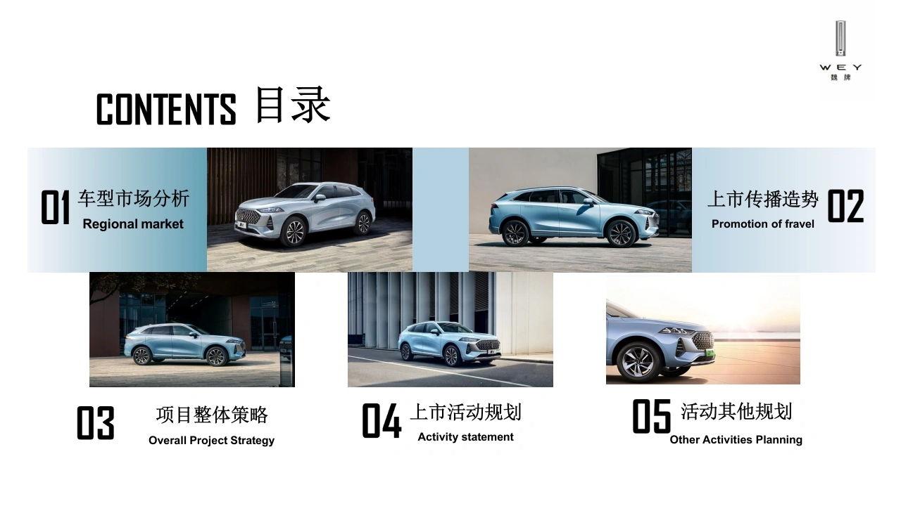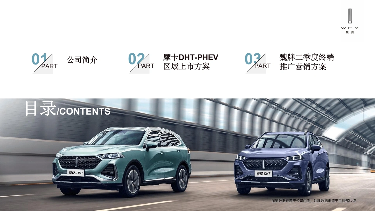 魏牌摩卡上市区域活动代理执行方案!WE Y0K公司简介02摩卡DHT-PHEV03魏牌二季度终端PARTPART区域上市方案PART推广营销方案目录/CONTENTS景铁DHT冒供DHT加速数据来源于公司内测,油耗数据来源于工信部认证!WE YPART公司简介01卡o!WE YPART摩卡DHT-PHEV区域上市方案02摩卡DHTWE YCONTENTS目录01车型市场分析上市传播造势2Regional marketPromotion of fravel3项目整体策略04上市活动规划05活动其他规划Overall Project StrategyActivity statementOther Activities Planning魏牌车型市场分析01Regional market《: